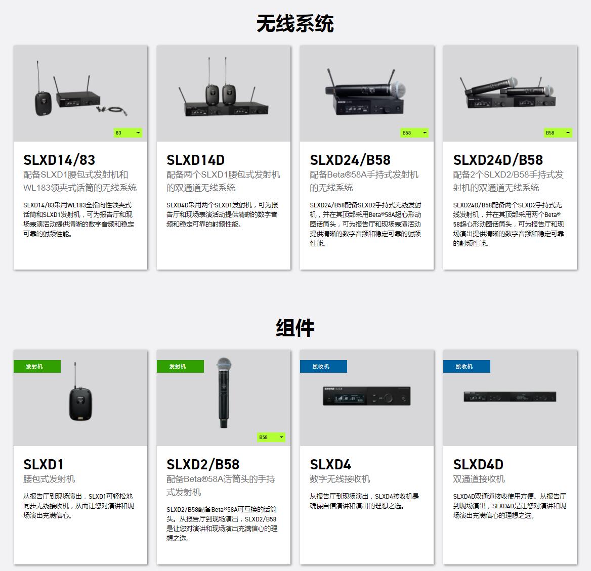 从报告厅到教堂再到表演场所,SLX-D可通过一套通用的无线系统配置为您提供清晰的24位数字音频、可靠的射频性能,以及简便的设置和可重复充电选项。 采用单通道半机架和双通道全机架接收机选项、手持式和腰包式发射机,以及多种人声、领夹式、头戴式话筒和乐器话筒系统配置。兼容舒尔UHF无线天线分配系统及远程天线配件。