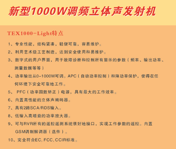 RVR TEX1000LIGHT(1KW)FM调频发射机