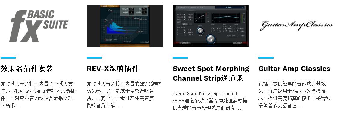 UR-C系列音频接口能与所有支持ASIO、Core Audio或WDM音频驱动协议的宿主软件兼容,无论您身处何地或使用什么样的宿主软件,皆可提供基于其内置的DSP效果器优化处理后的零延迟监听环境。UR-C系列音频可与Cubase或其它宿主软件无缝连接,通过其内置新研发的SSP3 DSP芯片和dspMixFx监听技术,提供内置DSP优化后的零延迟监听环境。