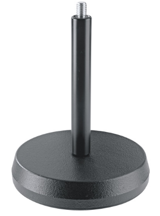 桌面话筒支架,由吸音铸铁底座和黑色粉末涂层拧入杆组成。