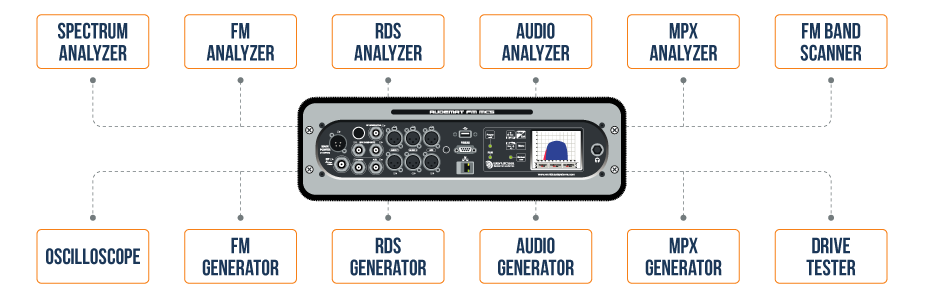 当今世界上可用的比较全面和通用的测量平台。在广播环境中,它可以用作便携式设备对覆盖区域内或静磁场的测量进行详细的监测。在发射现场,它也是完美的调试和维护调频设备。