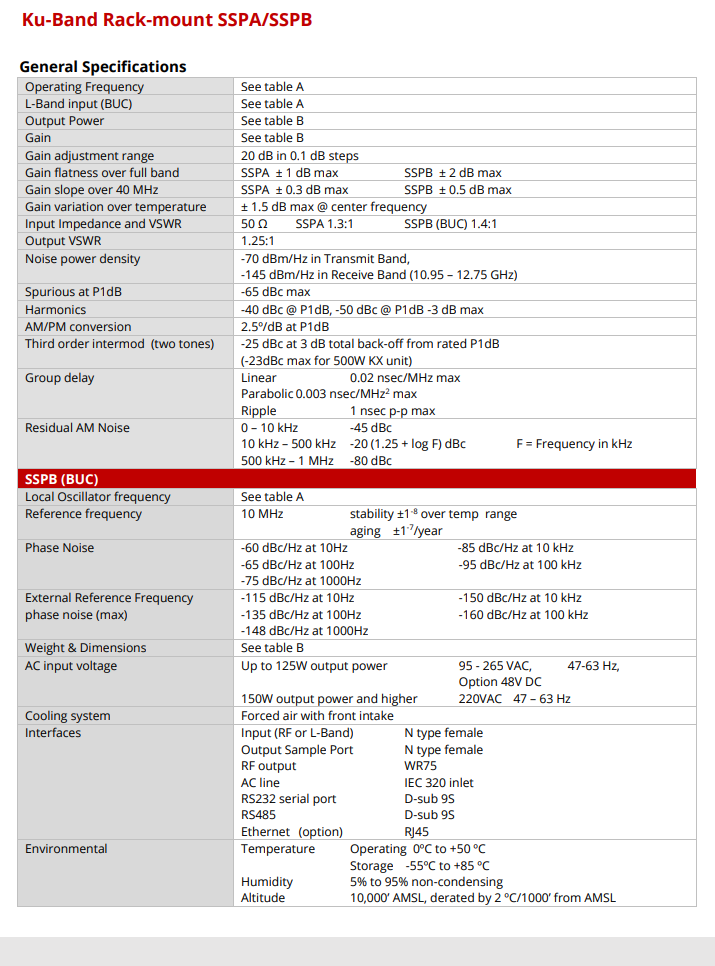 The ARM-K series Rackmount SSPA/SSPB (BUC) is available in output power from 80W to 500W. Higher power operation may be provided using external phase combining techniques offering an output power up to 800W.