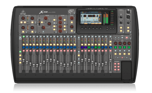 百灵达X32具备了市面上数字调音台的绝大部分功能,7寸的彩色大屏提供友好的操作界面。专用通道区设有17个背光的按钮以及13个带LED的旋钮,可对每个通道压缩器4频带均衡及众多的其他的细微差别之处进行调整。每个输入及输出通道区设有背光为128*64的图示LCD显示屏,以便可以快速了解重要的通道信息。